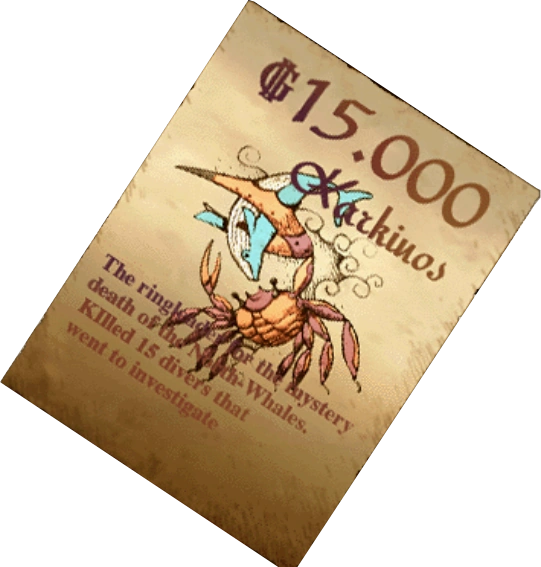 The bounty on the capture or death of this monstrous crustacean is 15,000 G.